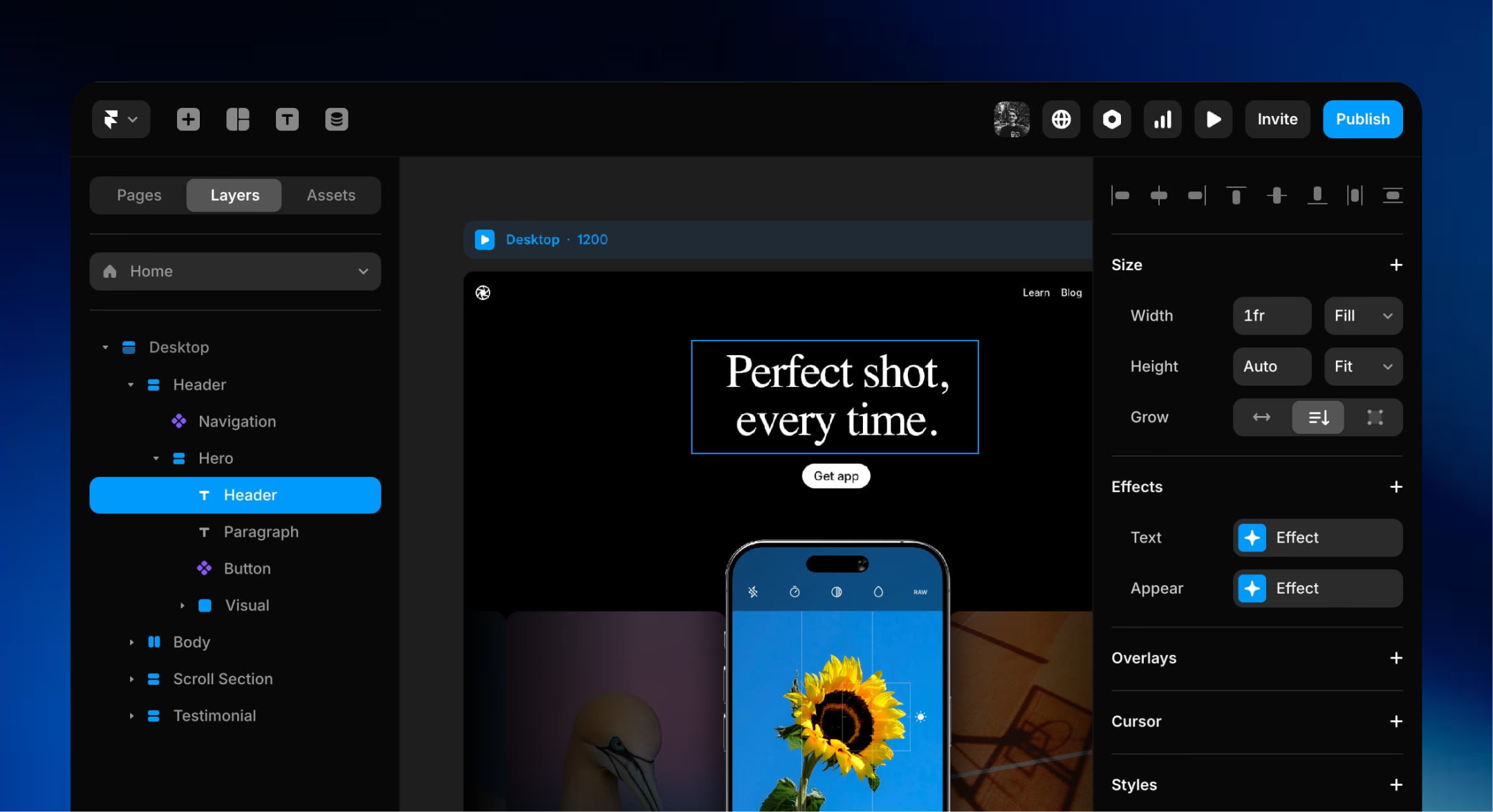 Launch fast and update even faster with Framer’s intuitive editor.